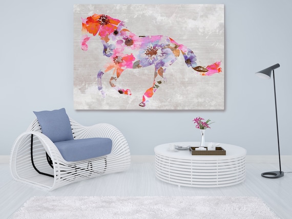 Running BOHO Horse 2. Floral Horse Art Large Canvas, BOHEMIAN PAINTING Multi Color Painted Horse Boho Wall Art, Floral Horse Canvas Print