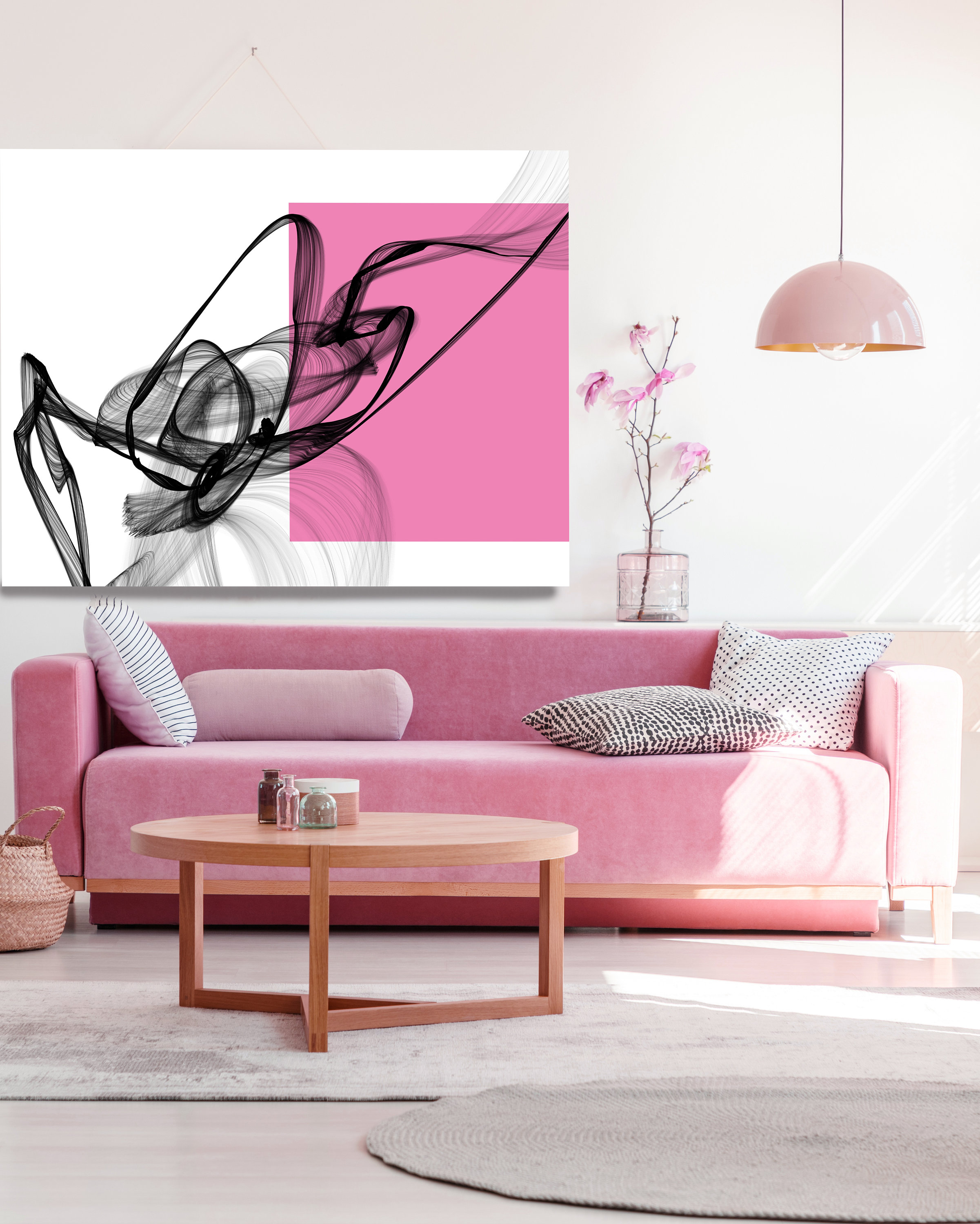Pink Square and Black Abstract Contemporary Abstract Canvas Art Print, Minimalist Artwork, Scandinavian Abstract Minimal Art