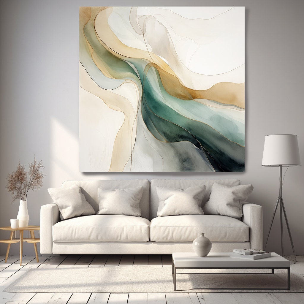 Vibrant Color Palette: The rich green hues and dynamic watercolor splashes add depth and dimension to any room, making it a perfect focal point for your home or office.