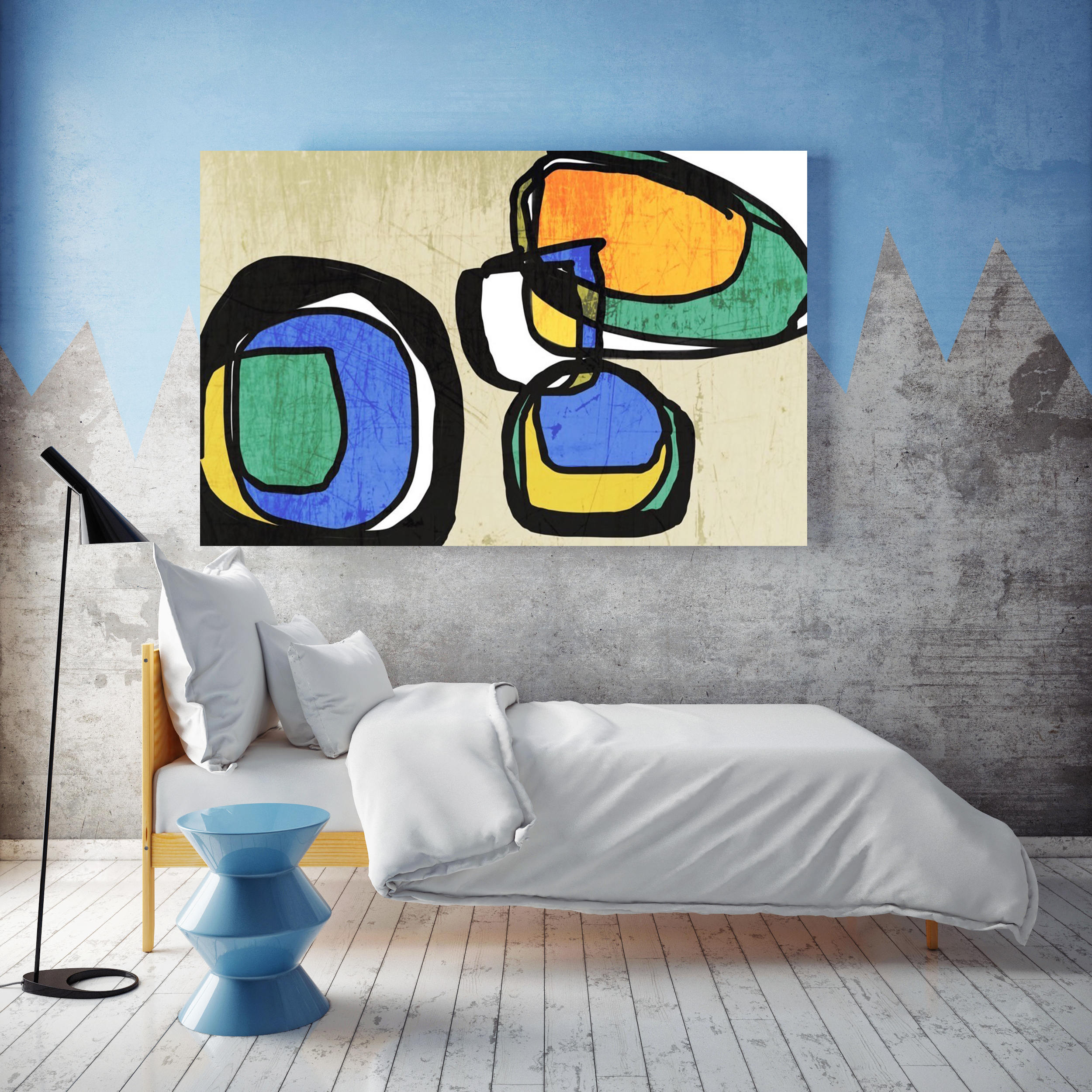 With retro colors and free formed geometric shapes, all of this pieces in my midcentury abstract art collection will add a fun accent to any room.